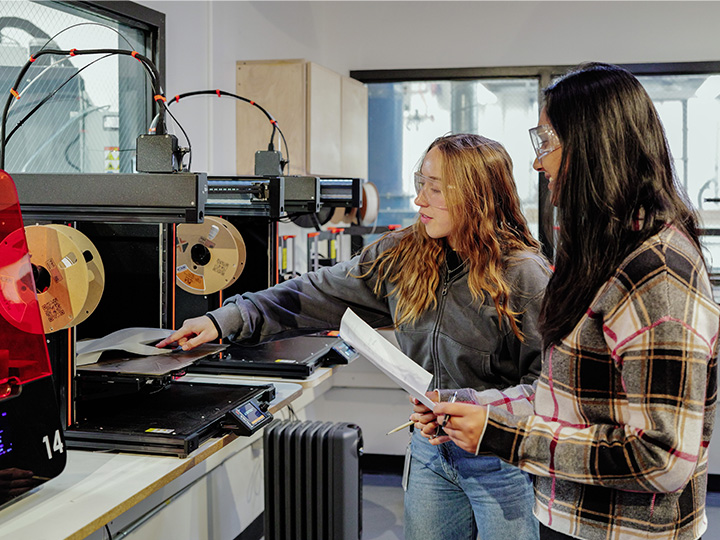 On campus, you’ll work in professional-grade studios with drafting tables, workstation labs running the latest Adobe and Autodesk software, a VR Room for virtual design, and a full 3D print lab. Our fabrication spaces include laser cutters, water jet cutters, and both 3-axis and 5-axis CNC machines, so you can bring complex ideas to life. You’ll also have access to heavy-duty sewing machines, professional paint booths, and a wide range of fabrication tools for prototyping and model making.